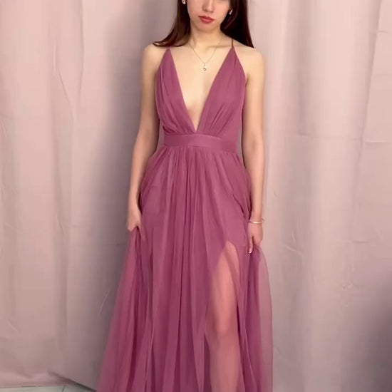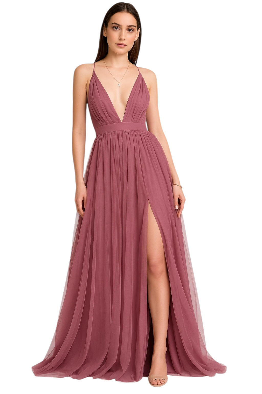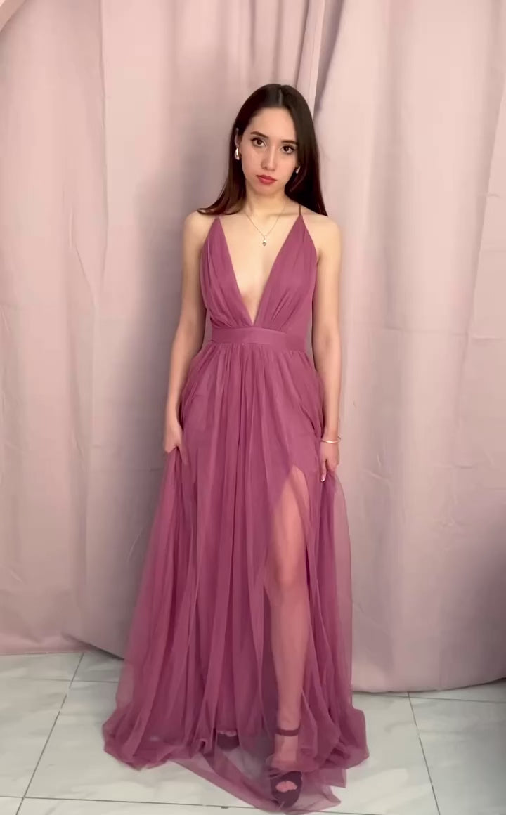 Vestido en Renta con escote en V y abertura en ambas piernas